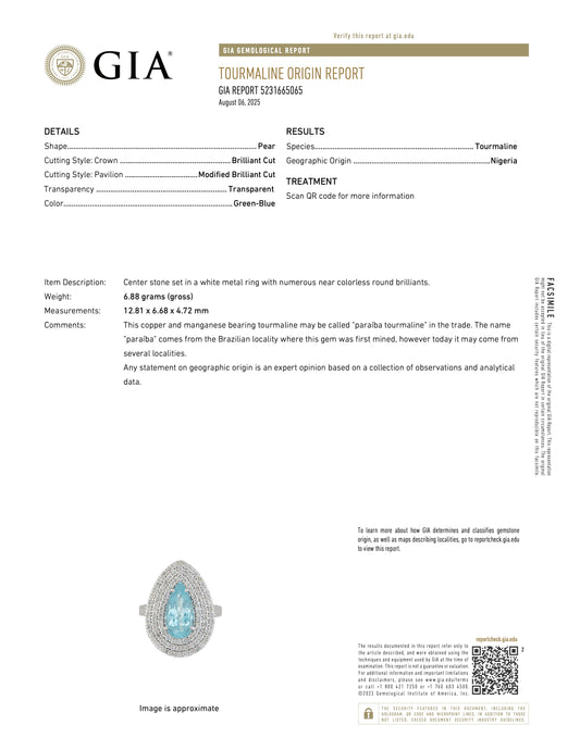GIA 2.50 ct. Paraiba Tourmaline & Diamond Ring in 18K White Gold