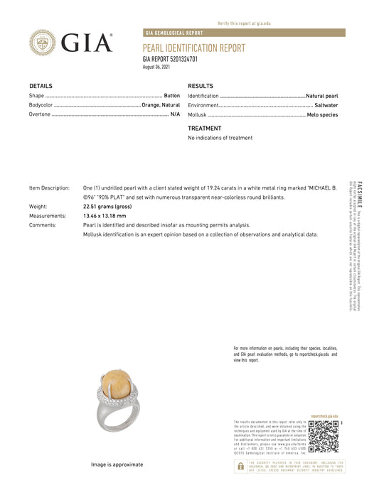 GIA 19.24 ct. Natural Melo Melo Pearl & Diamond Ring in Platinum