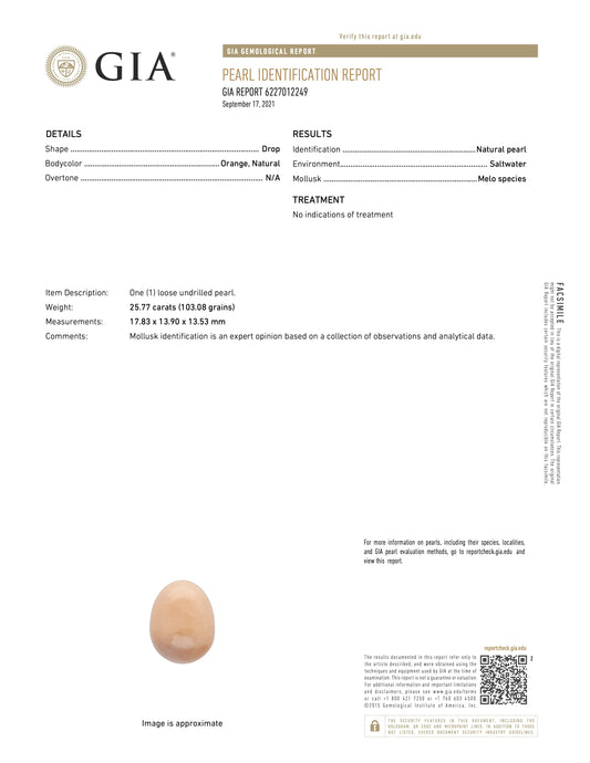GIA 25.77 ct. Natural Melo Melo Pearl