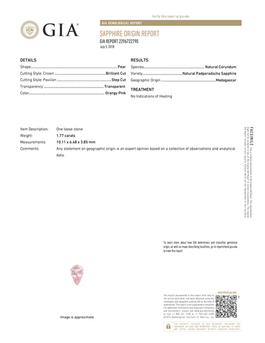 GIA 1.77 ct. No-Heat Padparadscha Sapphire & Diamond Ring in Platinum