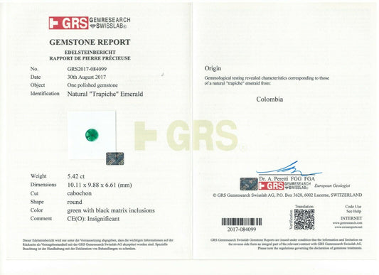 GRS 5.42 ct. Colombian Trapiche Emerald & Trillion Cut Diamond Ring in Platinum & 18K Gold