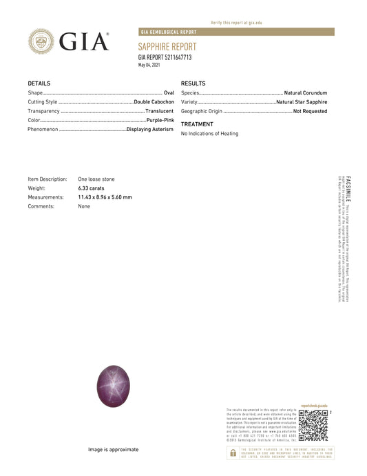 GIA 6.33 ct. No-Heat Star Sapphire Ring in Platinum