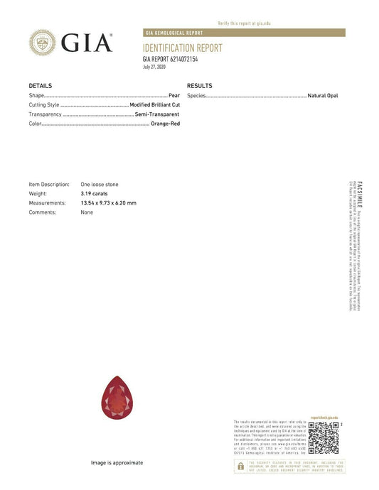 GIA 3.19 ct. Red Fire Opal & Diamond Ring in Platinum