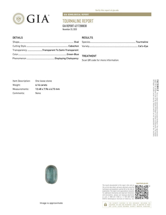 GIA 6.16 ct. Cat's Eye Tourmaline & Diamond Pendant in Platinum