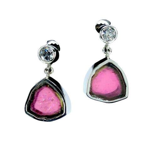 Watermelon Tourmaline & Diamond Earrings in Platinum
