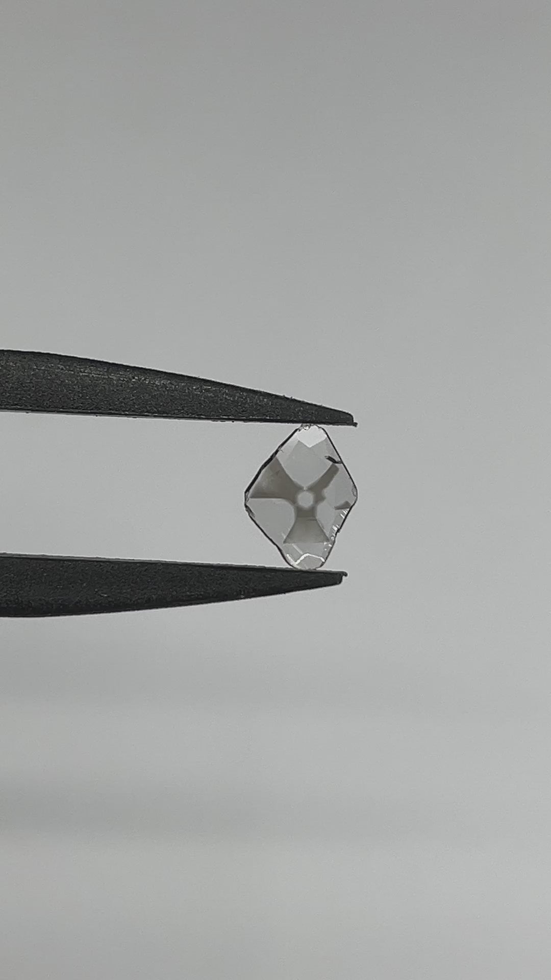 This extremely rare and unusual, natural fancy gray asteriated diamond weighs 1/4 carat. It measures 8.36 x 6.46 × 0.47mm and contains a gorgeous hydrogen cloud inclusion radiating out from its center.