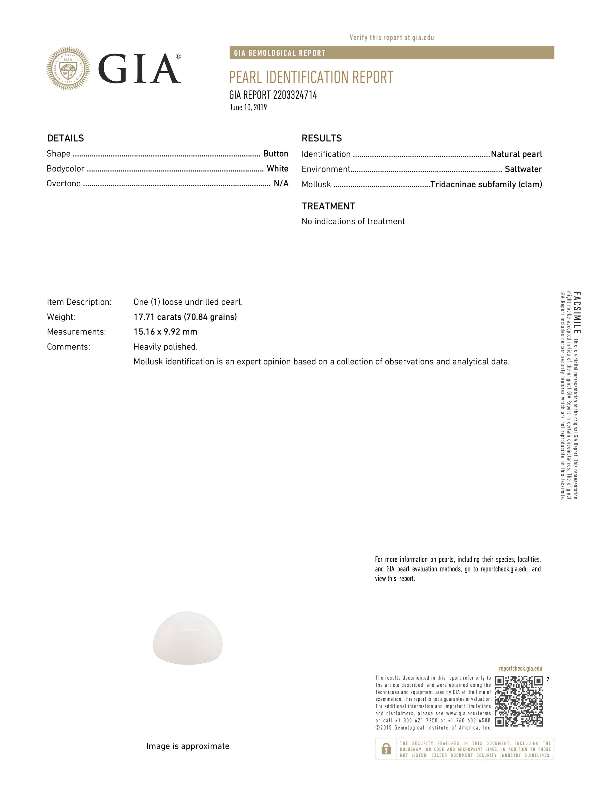 Accompanied by GIA Pearl Report No. 2203324714, confirming the pearl's natural origin.