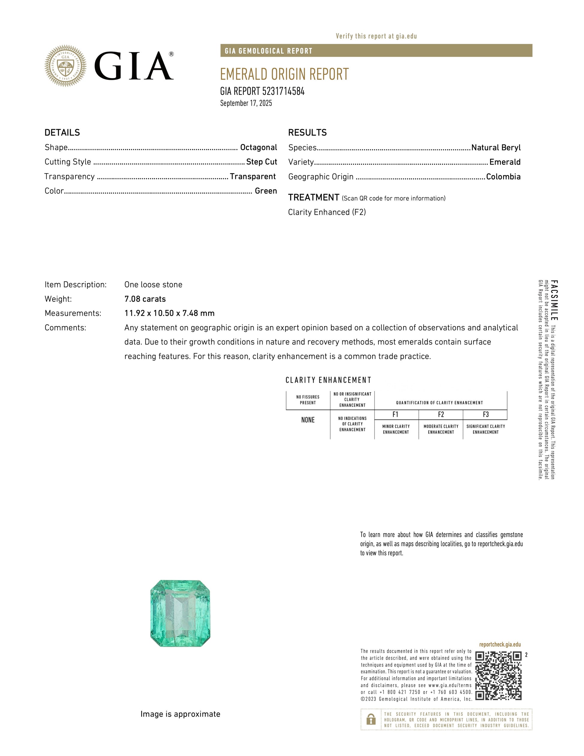 This emerald will be accompanied by GIA Emerald Origin Report Number 5231714584.